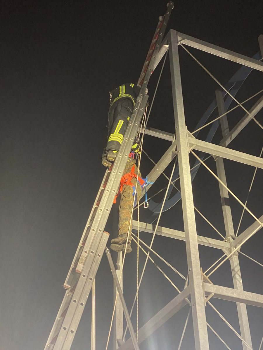 Die Einsatzkräfte hatten die Aufgabe, den Mitarbeiter aus der Höhe abzuseilen und die Einsatzstelle ausreichend auszuleuchten.
